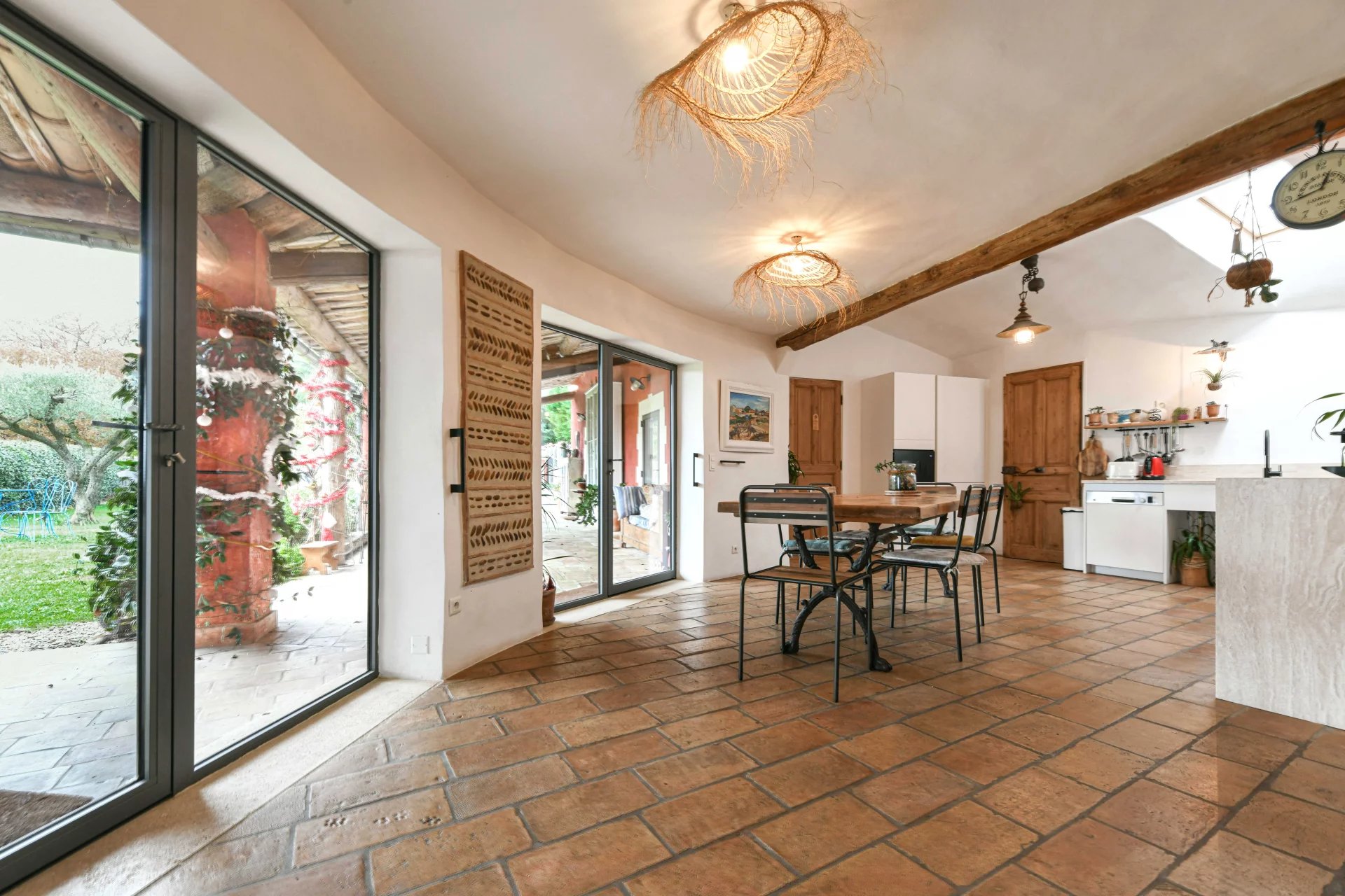 The whole house, day and night space opens onto a covered terrace of 120 m², offering many spaces, including a summer kitchen, a summer lounge and a summer dining room.