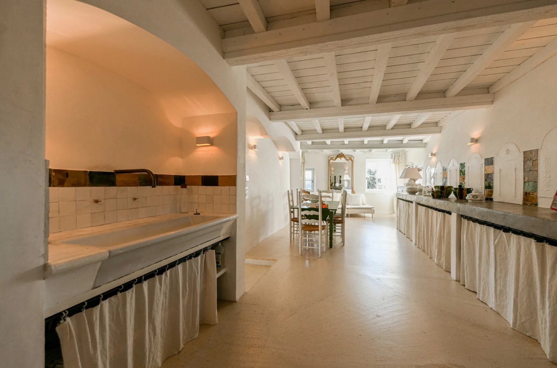A perfect combination of old architectural features and modern comforts, with French ceilings, old terracotta tiles and central air conditioning.