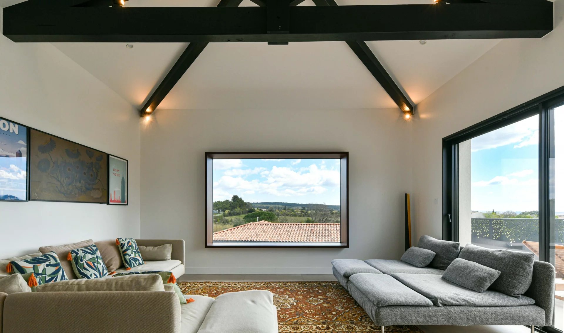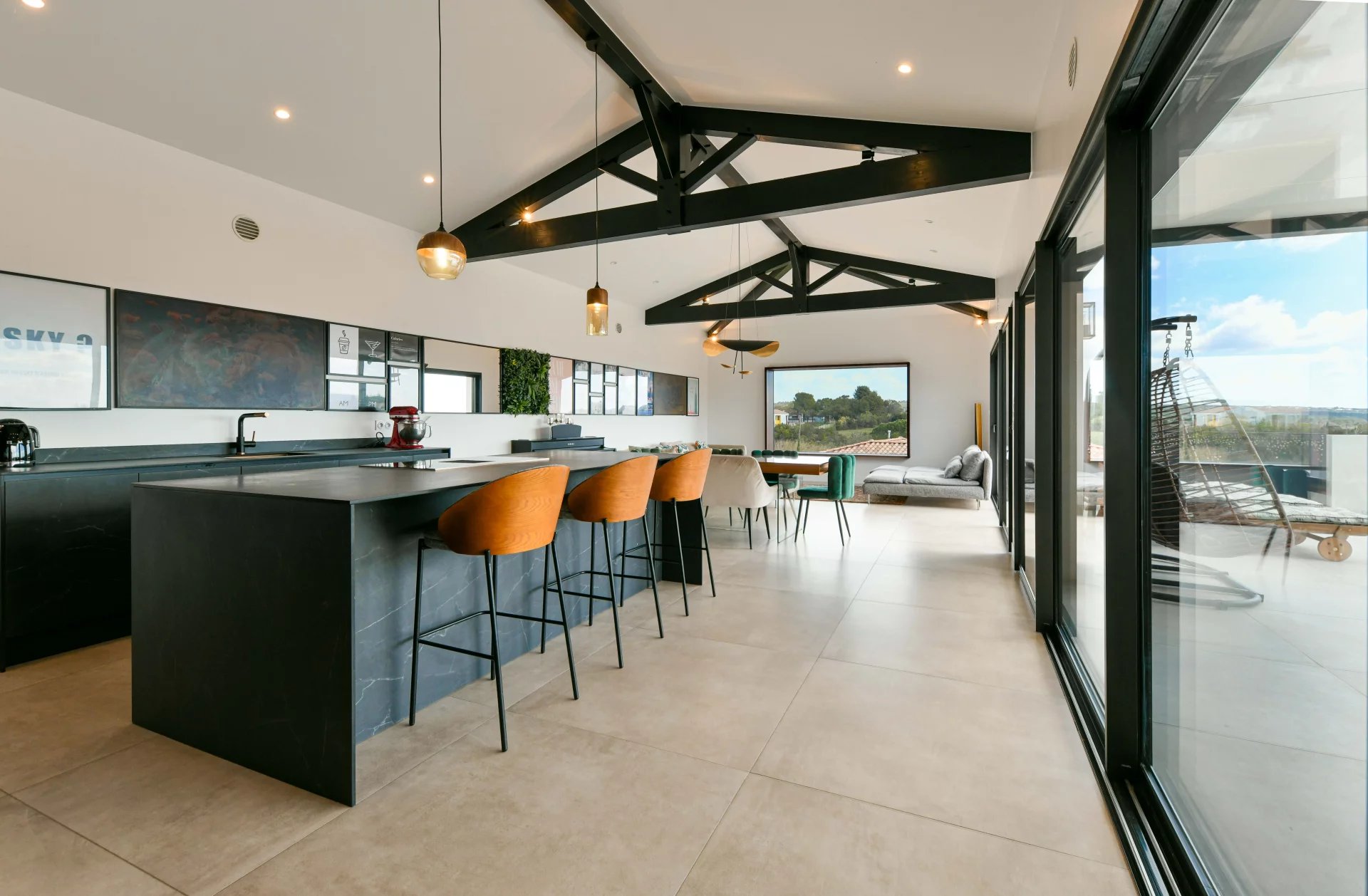 Stunning open-plan living area opening onto the terrace and the view