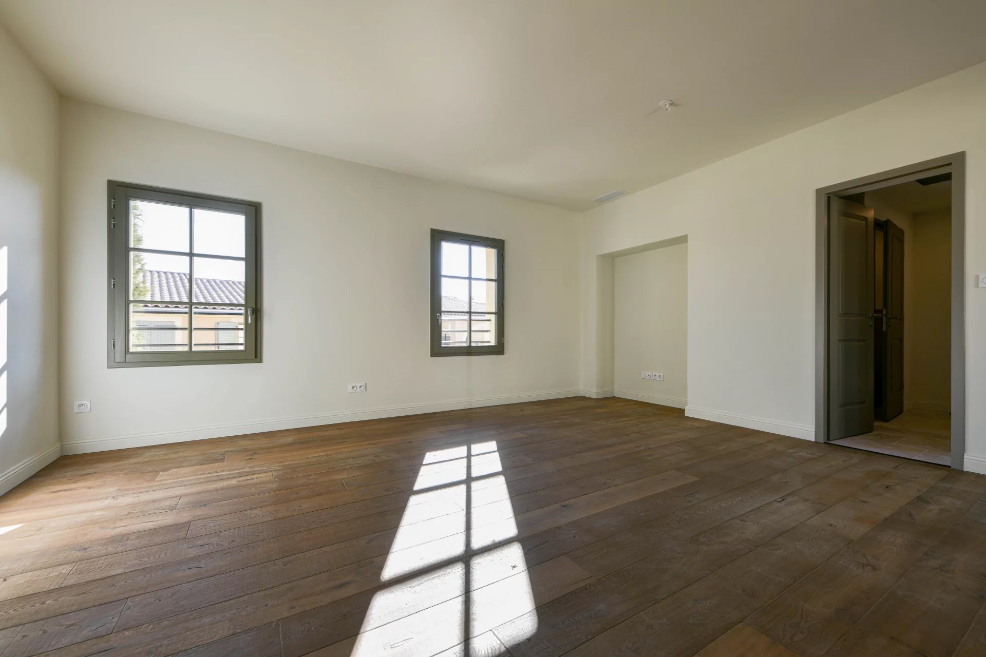 La pièce de vie offre de très beau sol en bois, largement ensoleillée par deux fenêtres, ainsi que la lumière venant de la cuisine, de l’autre côté, située en position traversante.