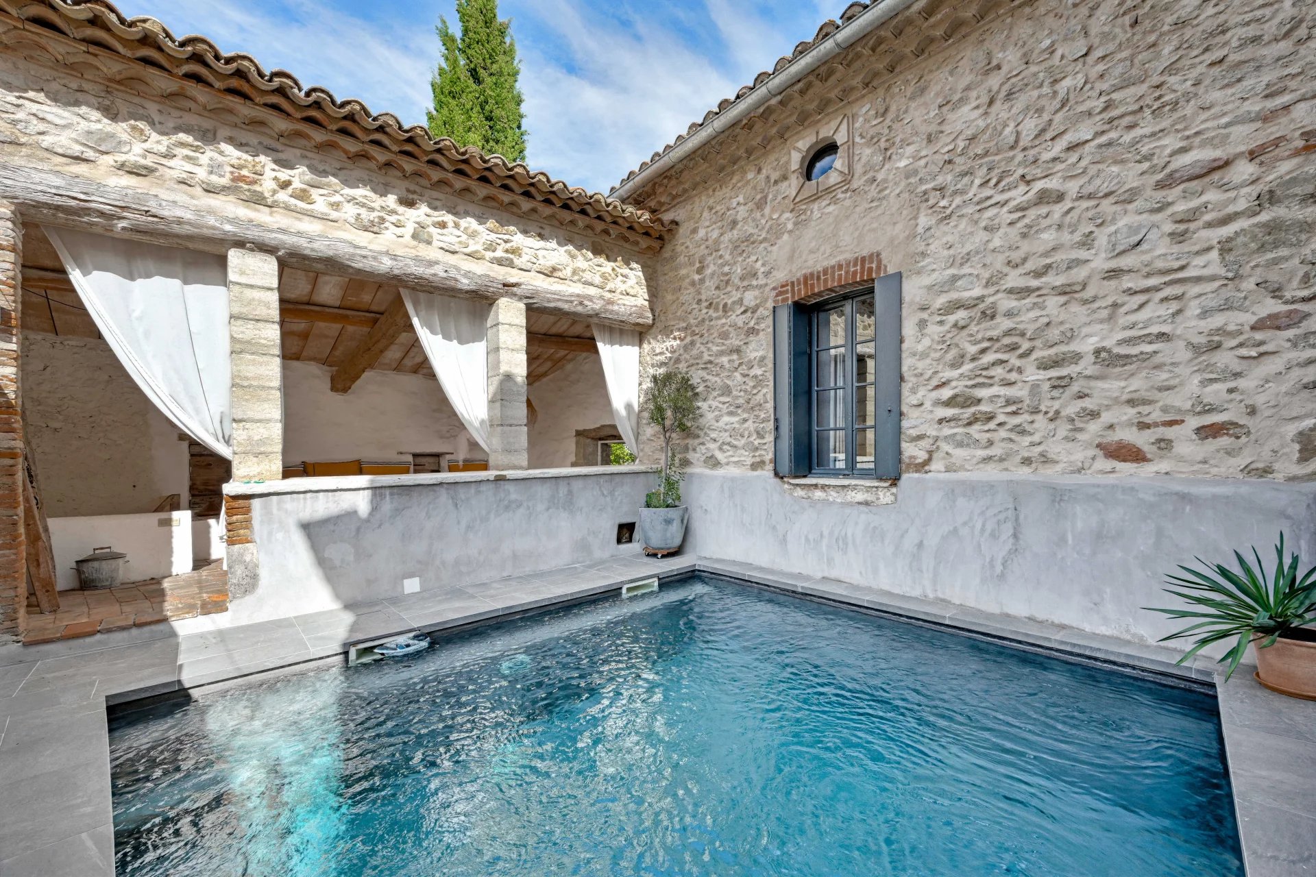 Dans un authentique village, jardin arboré, terrasses, piscine