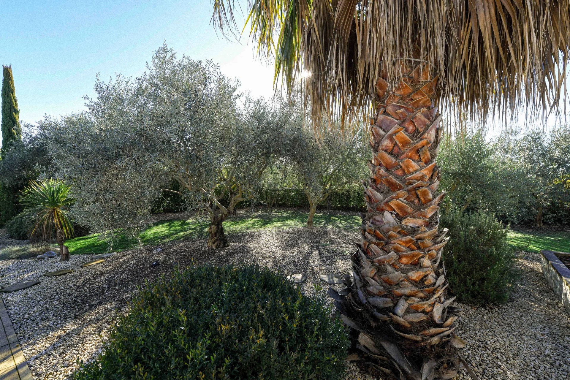 Le jardin d’une superficie de 1243 m² est planté d’oliviers et palmiers. Il offre un environnement paisible et sans vis-à-vis.